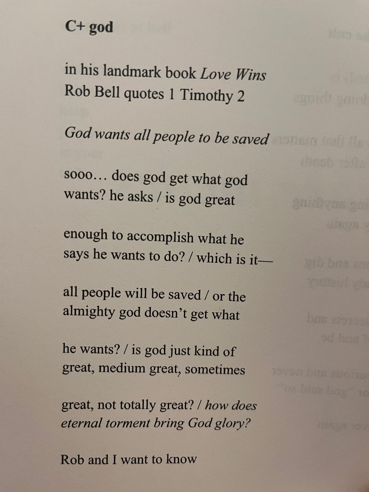 Krispin always points out that victims of abuse or trauma are the types of people who might engage in self-sabotaging behaviors, which means even CS Lewis’ view of hell is really violent! Basically blaming folks who already feel heaps of shame that yeah, THEY are locking themselves out of God’s love, and it’s all their fault. None of it really adds up, and all I can see is how these views harm vulnerable people 🥺